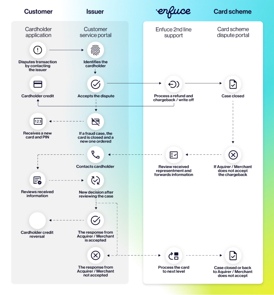 Enfuce also supports compromised card handling, card replacements, chargebacks, and dispute management in line with scheme and regulatory requirements.
